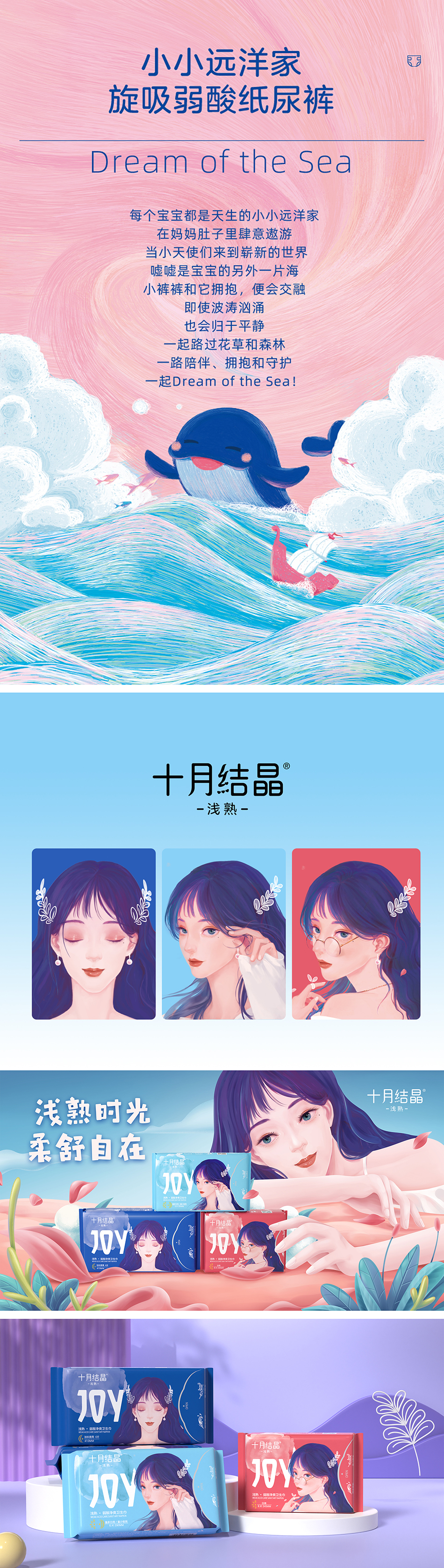 服務(wù)方案:圍繞產(chǎn)品主題訴求展開新的產(chǎn)品形象塑造,根據(jù)不同的產(chǎn)品屬性分別以符合主題的場景式插畫表現(xiàn)賣點(diǎn)和訴求,嬰童類產(chǎn)品著重展現(xiàn)美妙童趣,女性護(hù)理產(chǎn)品刻畫女性淺熟之美,有效強(qiáng)化產(chǎn)品個(gè)性及價(jià)值。