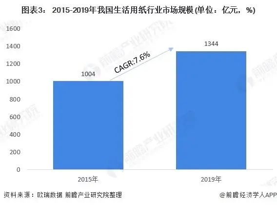 這一時(shí)期中國經(jīng)濟(jì)運(yùn)行總體平穩(wěn)、穩(wěn)中有進(jìn),中國生活用紙市場在此大背景下繼續(xù)保持穩(wěn)定增長,行業(yè)規(guī)模從2015年的1004億元人民幣,增長到2019年的1344億元人民幣,CAGR為7.6%。