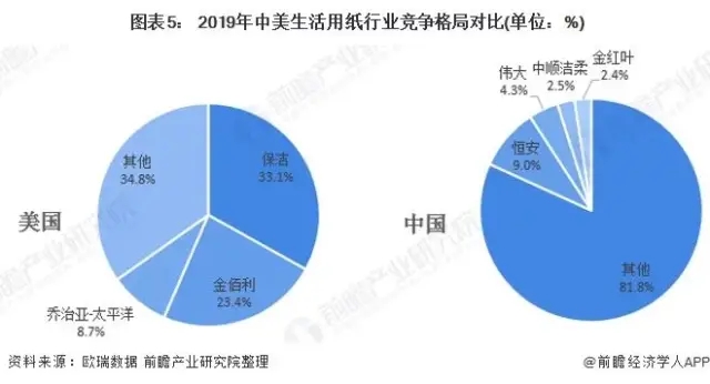 從產(chǎn)能口徑來看,行業(yè)產(chǎn)能前4的公司依次是恒安紙業(yè)、維達(dá)紙業(yè)、中順潔柔和金紅葉紙業(yè),除中順潔柔外,其他三家公司均未在A股上市(恒安國際和維達(dá)國際在港股上市)。根據(jù)各公司2019年產(chǎn)能數(shù)據(jù)測算,生活用紙行業(yè)的CR4僅為30%,CR8和CR10也分別僅有34.7%和36.3%。行業(yè)集中度對比美國存在較大提升空間,而環(huán)保政策趨嚴(yán)也將利好行業(yè)龍頭。另一方面,中國生活用紙的行業(yè)集中度與美國相比相對較低,部分原因是許多本地品牌和中小企業(yè)通過積極布局線上渠道和發(fā)展電商業(yè)務(wù)而快速發(fā)展崛起。線上業(yè)務(wù)開展成本較低,中小企業(yè)試錯成本較低,它們通常通過提供具有競爭力的價(jià)格的產(chǎn)品而受到歡迎。但長期來看,品牌化、高質(zhì)化依然是明確的行業(yè)消費(fèi)趨勢。