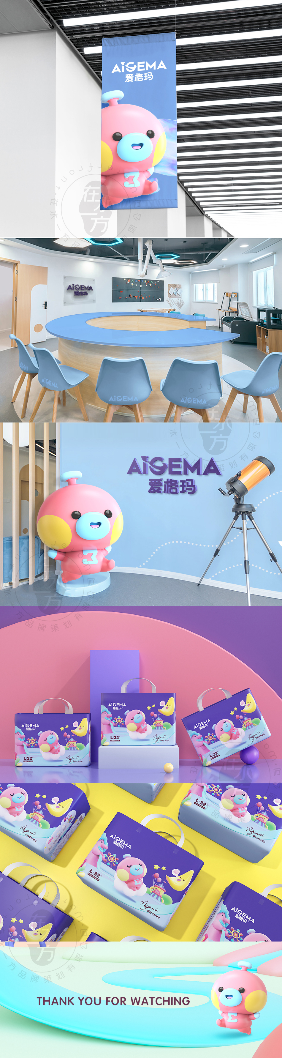 服務方案:愛格瑪品牌符號化IP化,形成更具品牌內(nèi)涵的視覺體系,并產(chǎn)生可與母嬰人群實現(xiàn)有效溝通的內(nèi)容。3D技術(shù)對愛格瑪星球概念的加持顯而易見,從產(chǎn)品形象構(gòu)建上完成對愛格瑪品牌的全面升級,使得品牌風格更為適應消費市場需求。