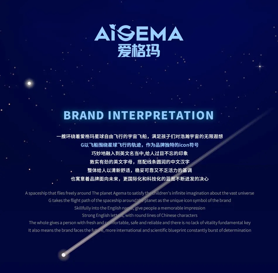 有故事的LOGO,飛船+星軌,小小星夢從此開始。愛格瑪星系宇宙,架構(gòu)起所有關(guān)于愛的哲學的童話意義。簡潔內(nèi)趣,帶領(lǐng)品牌踏上愛的新征程。