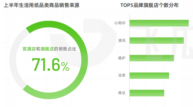 可以看到,2023上半年生活用紙的銷售來(lái)源中,旗艦店與官方旗艦店的銷售占比高達(dá)71.6%;品牌們通常會(huì)圍繞產(chǎn)品線或細(xì)分人群進(jìn)行店鋪矩陣搭建,進(jìn)而開(kāi)展有針對(duì)性的營(yíng)銷,以增加轉(zhuǎn)化幾率。