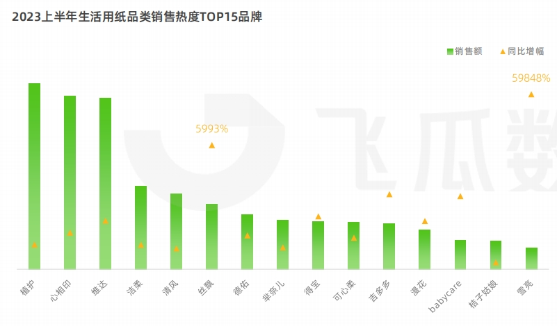 在各大電商平臺(tái)中,抖音電商表現(xiàn)出強(qiáng)勁增勢(shì),2023上半年生活用紙的品類銷售熱度較去年同期增長(zhǎng)75.4%。